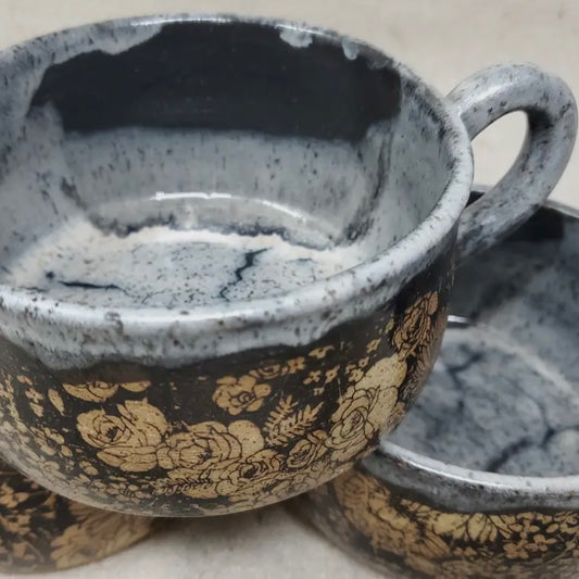 Turtle Hollow Pottery Flower Garden Soup Bowl in Snow Storm Glaze