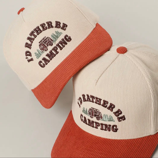 I'd Rather Be Camping 3D Embroidered Corduroy Trucker Hat