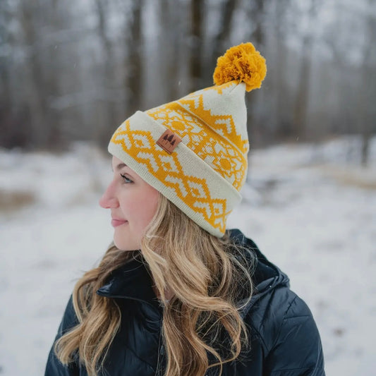 The Montana Scene Snowflake Pattern Pom Beanie - Mustard
