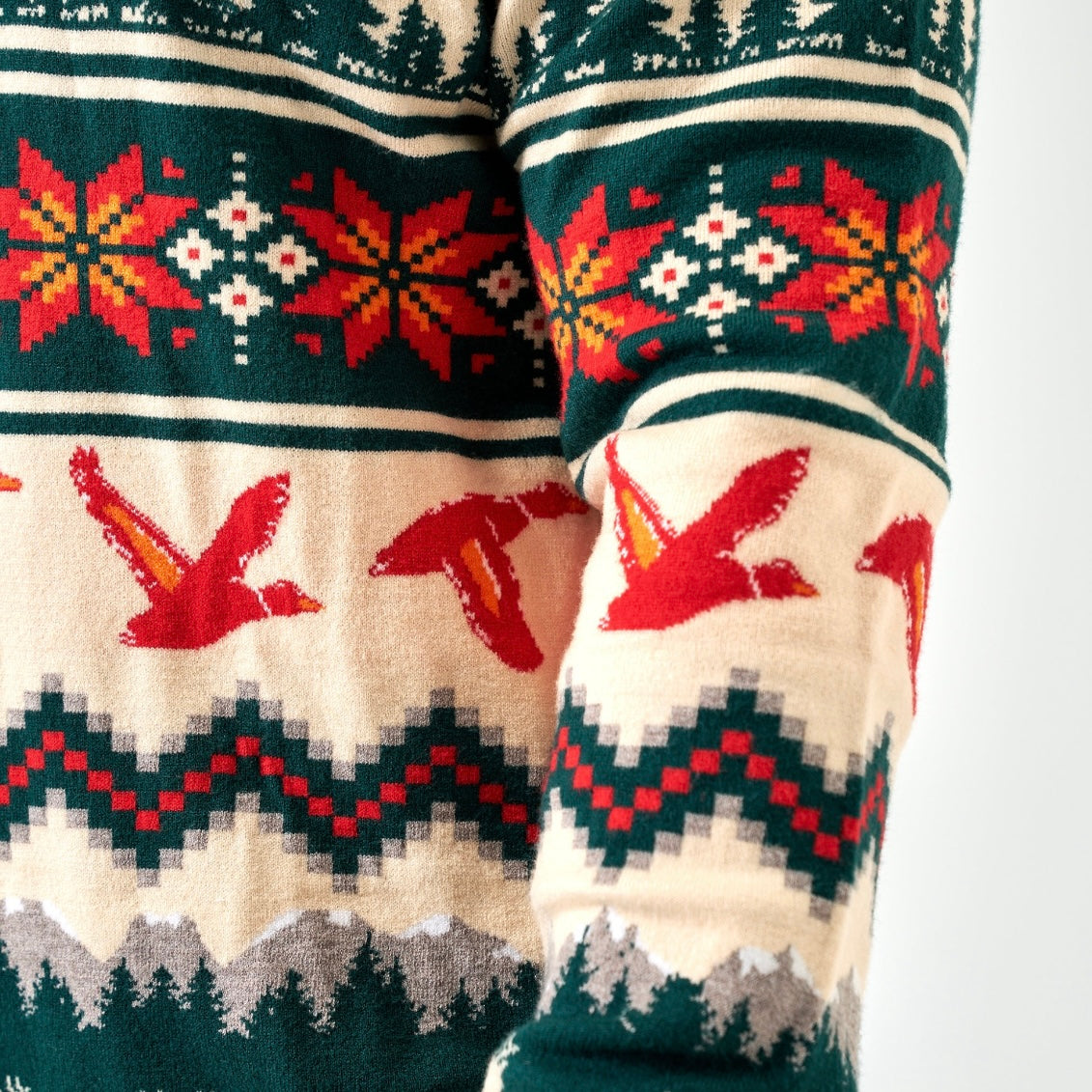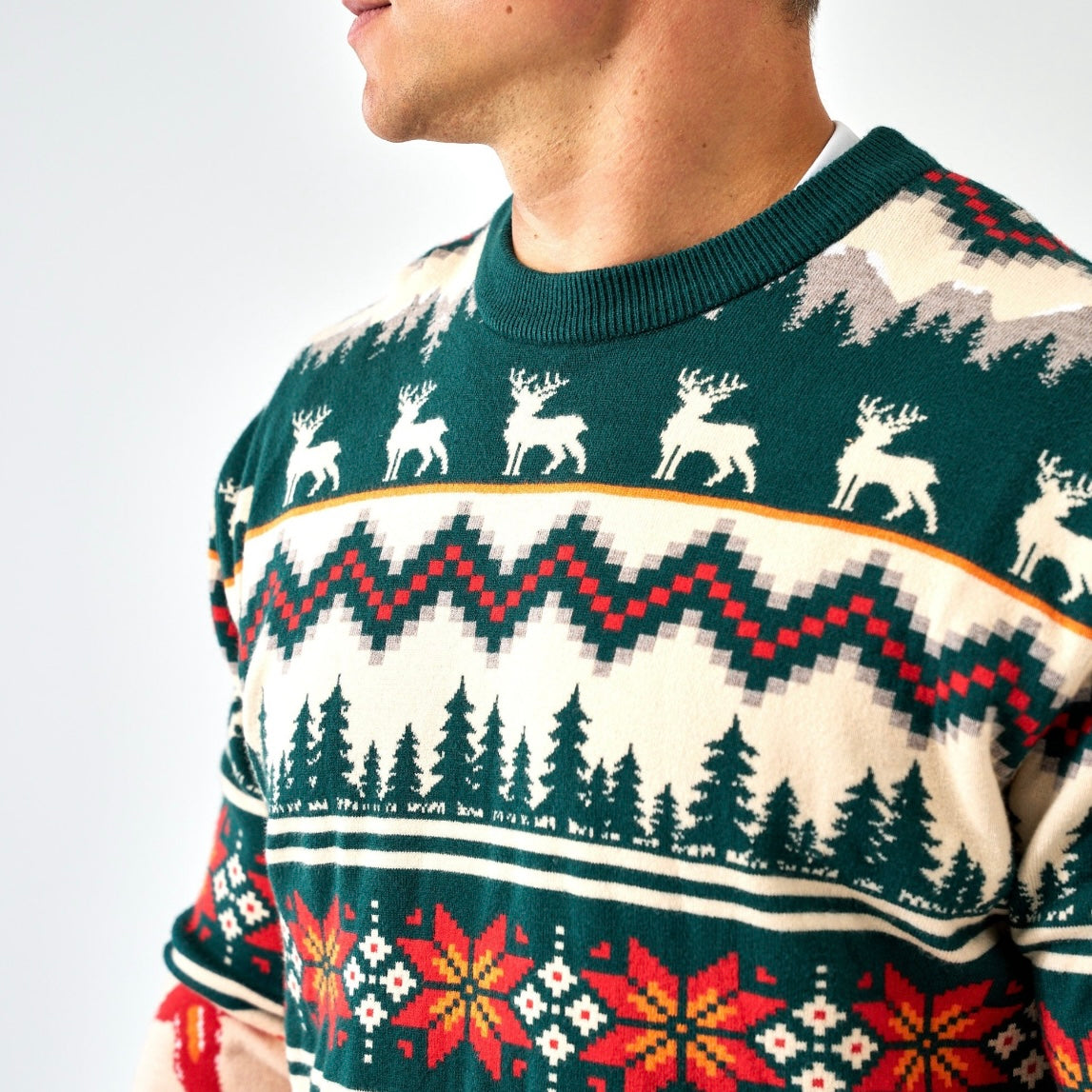 Bring the holiday spirit to the great outdoors with the BURLEBO Christmas Sweater. Featuring a custom pattern of deer, ducks, evergreens, and mountains, this festive knit blends classic Christmas vibes with rugged, outdoor roots. With a soft feel and comfortable fit, it's perfect for campfire parties, holiday photos, or your next ugly sweater contest—though we’d argue it looks too good to be called "ugly."
