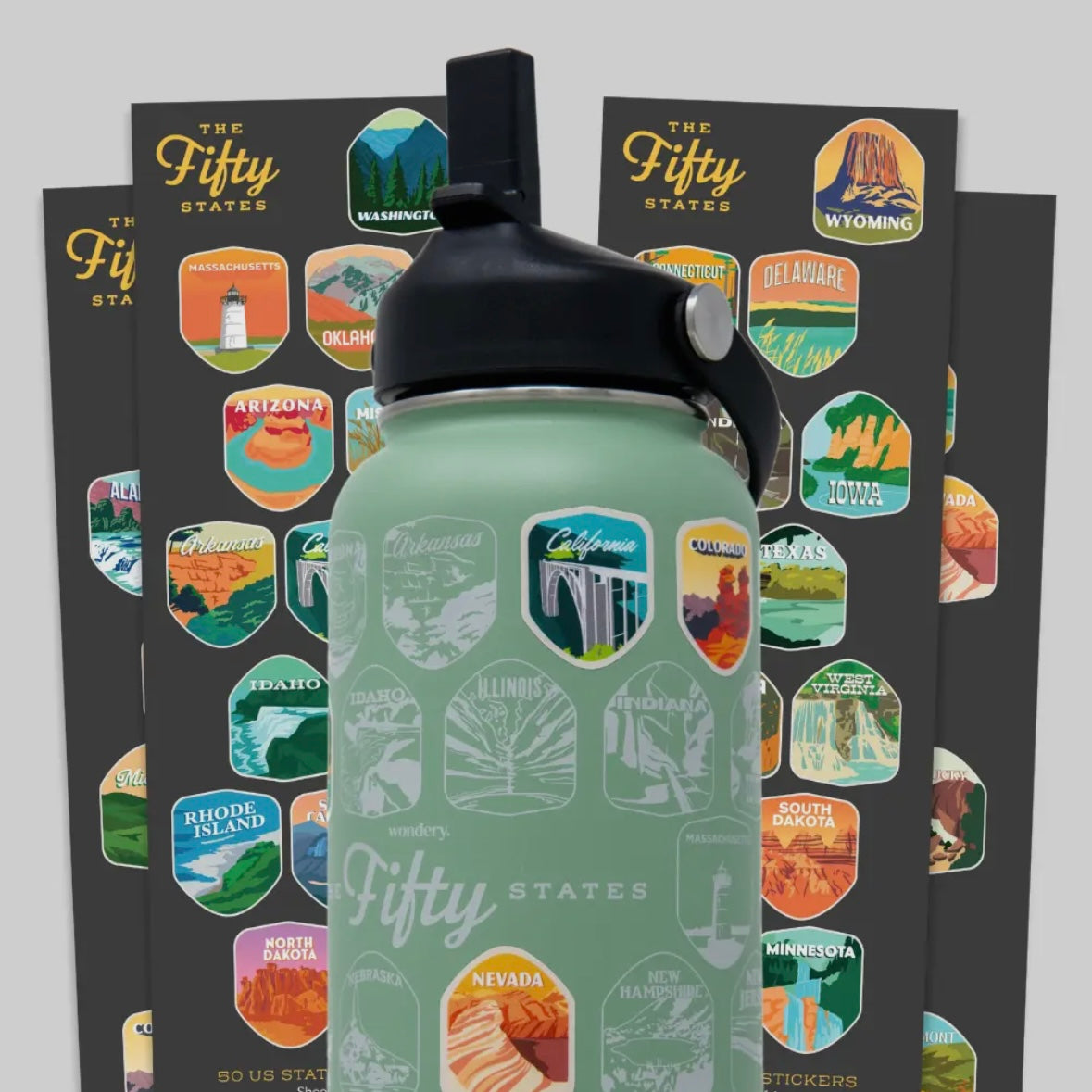 Wondery Outdoors Fifty States Bucket List Water Bottle