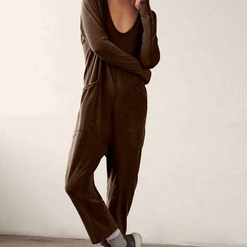 Your favorite onesie is now cold-weather ready-- perfect for layering on post-sweat sesh, this soft and comfy long-sleeve onesie features a slouchy, relaxed-fitting design with a dropped crotch and convenient side pockets.