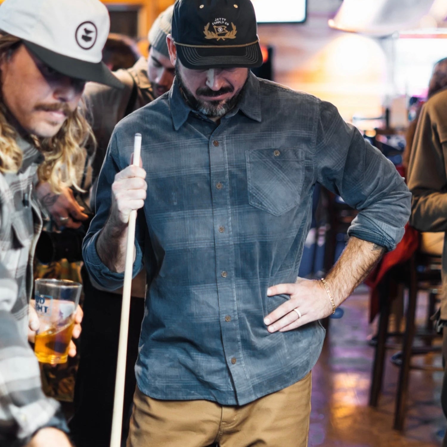 Fabric Content: 97% Cotton, 3% Spandex Details: •Laser engraved coconut buttons •Scallop side-seams •Custom labeling at neck, inner-placket, and chest pocket
