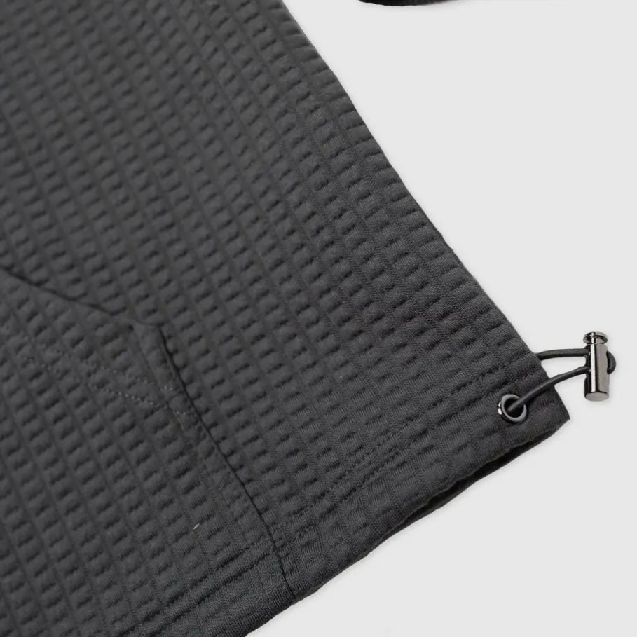 * Premium Poly-Knit Blend * Waffle Grid Pattern * Adjustable Draw-chord * Thumbholes at cuff * 2 Front Pockets * Tech Pocket on chest * Regular Fit