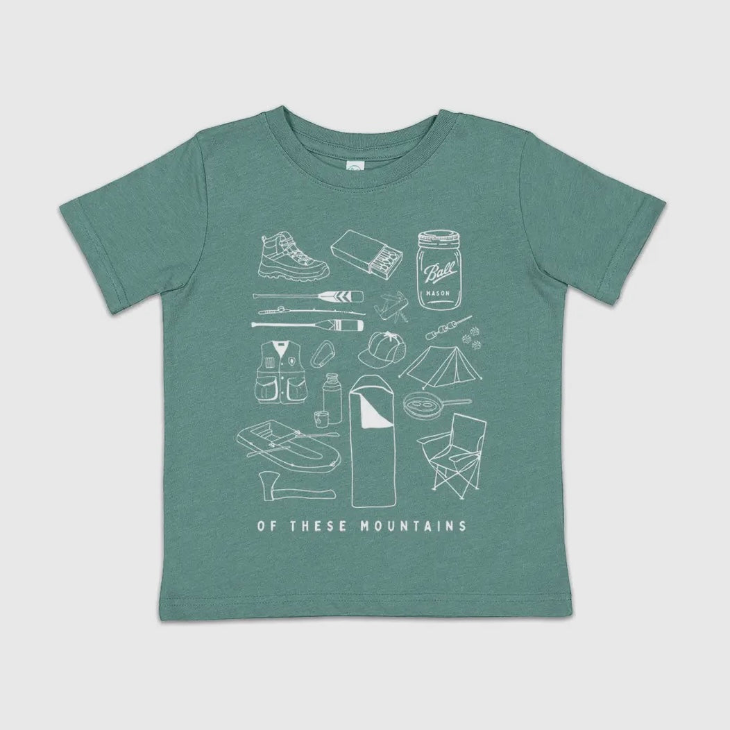 Of These Mountains Camping Gear Toddler Tee in Basil