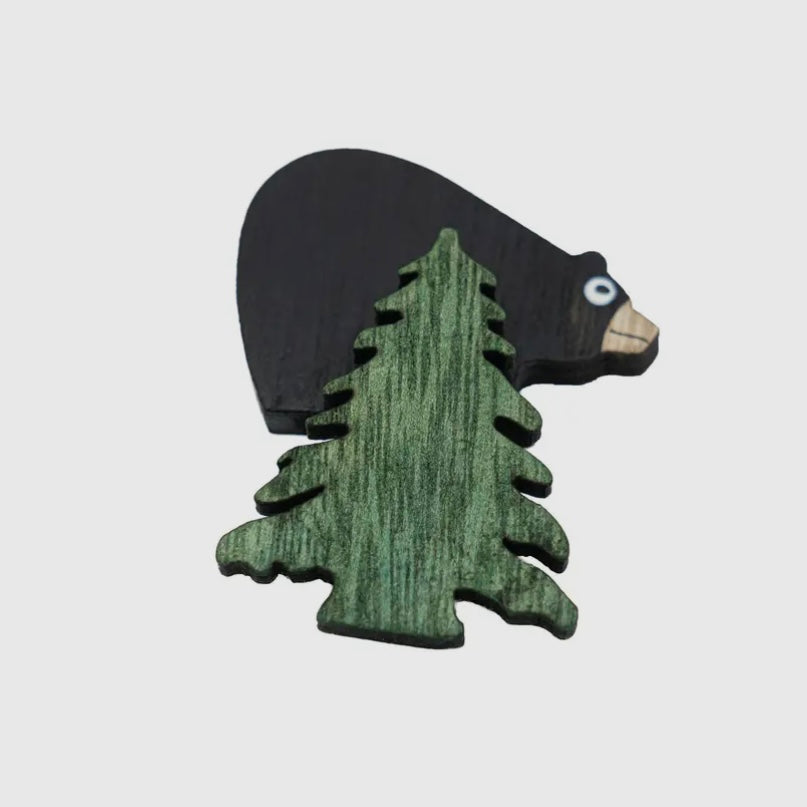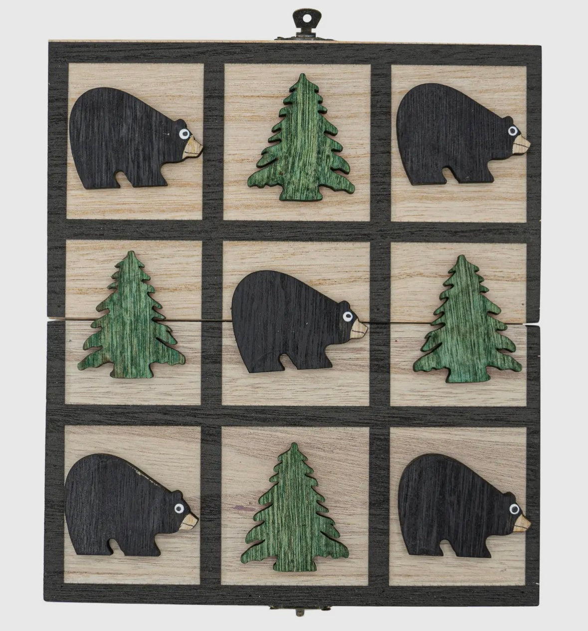 This wooden travel tic-tac-toe set is the perfect companion for on-the-go fun. Designed for convenience, it folds in half, allowing you to store the game pieces inside for easy transport and organization. Featuring charming black bear and tree-shaped pieces, this set brings a rustic, nature-inspired twist to the classic game. Crafted from durable wood with a smooth finish, it's built to last through countless adventures. Compact and lightweight, it's great for road trips, camping, or cabin stays. Packaged in a bag with a header for easy display, this travel tic-tac-toe set makes a wonderful gift or souvenir for outdoor enthusiasts and game lovers alike.